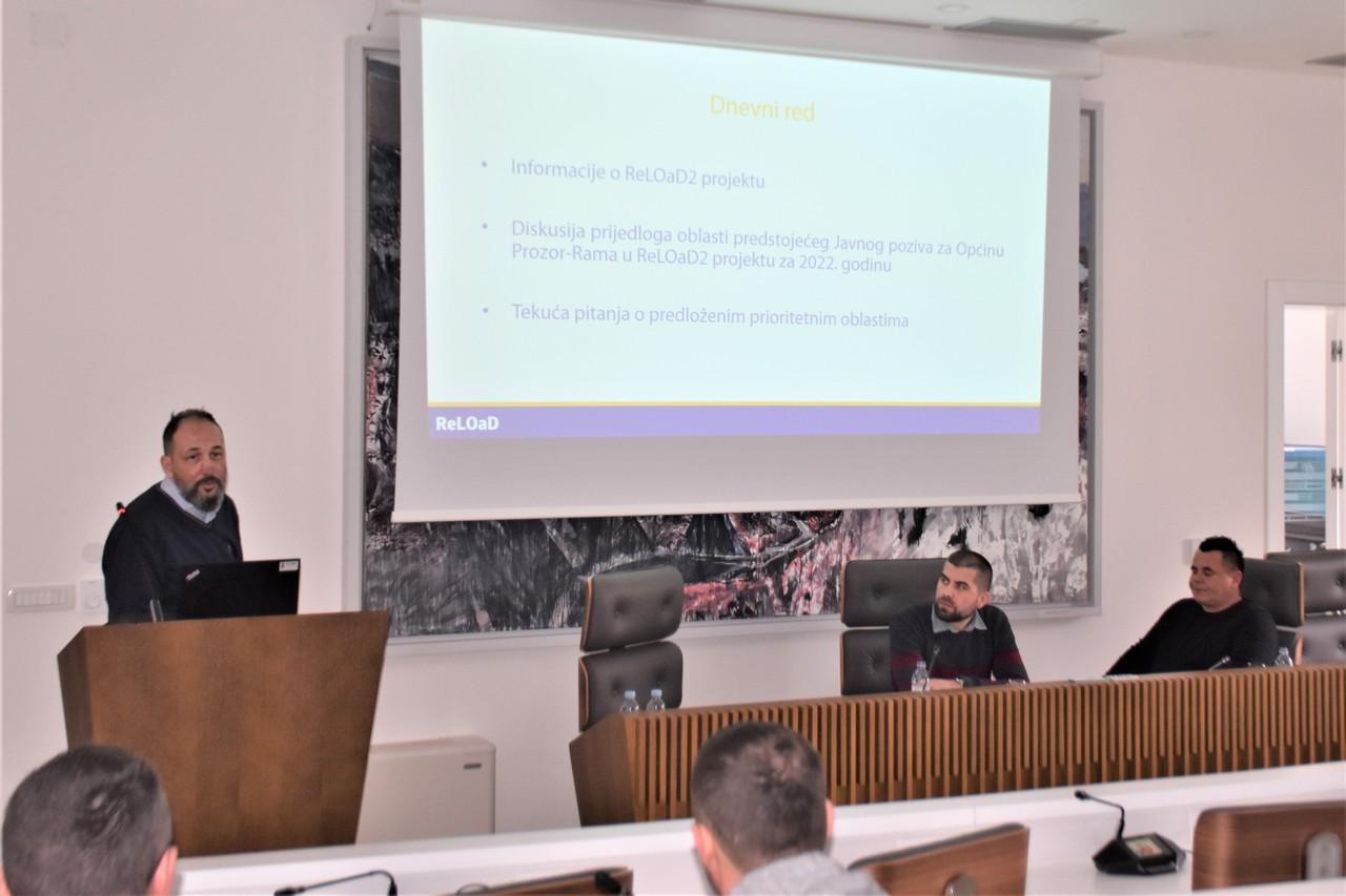 Predstavnici UNDP-a, informirali su sudionike o ReLOaD2 projektu, predloženim oblastima predstojećeg Javnog poziva za Općinu Prozor-Rama u ReLOaD2 projektu za 2022. godinu.