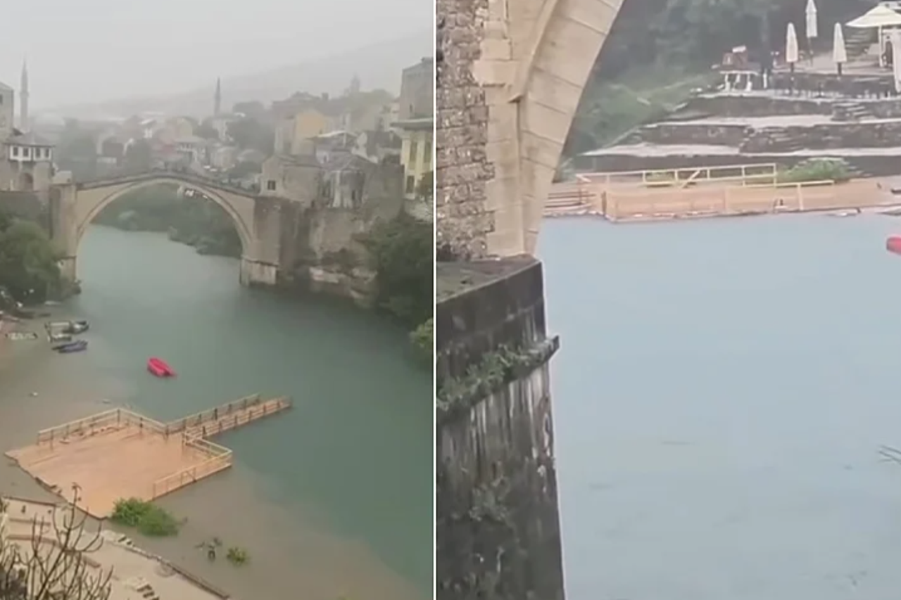 Nabujala Neretva odnijela drvenu konstrukciju ispod Starog mosta
